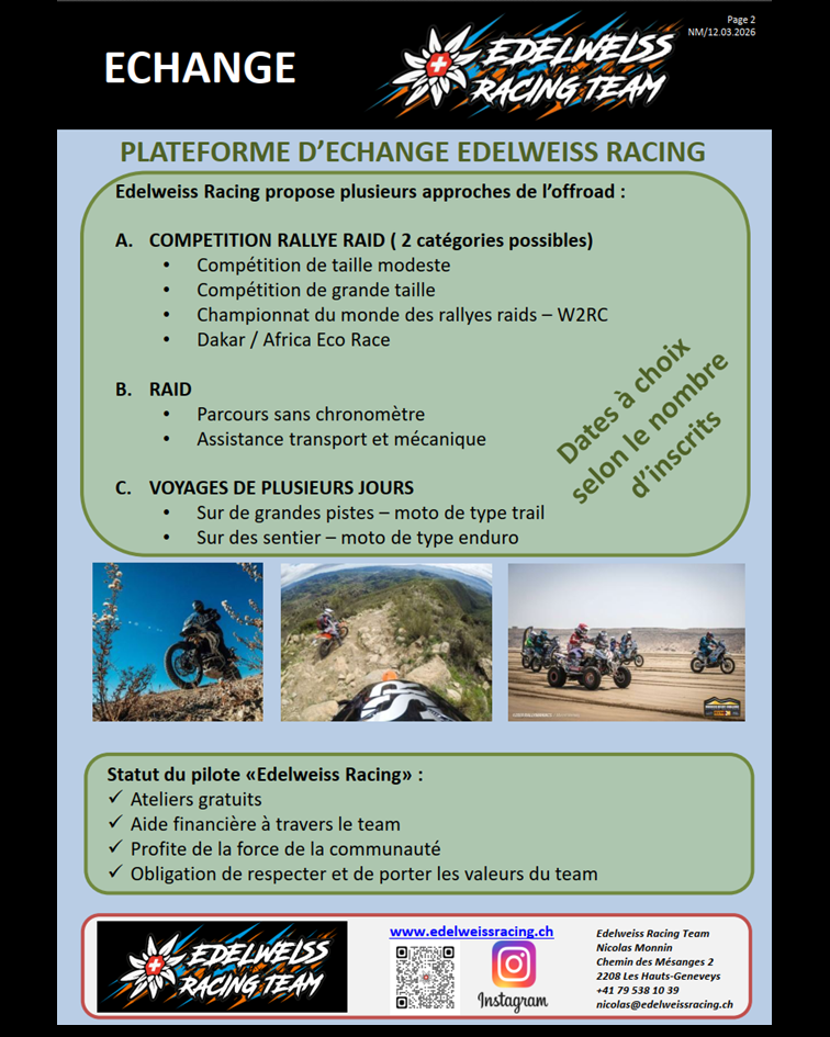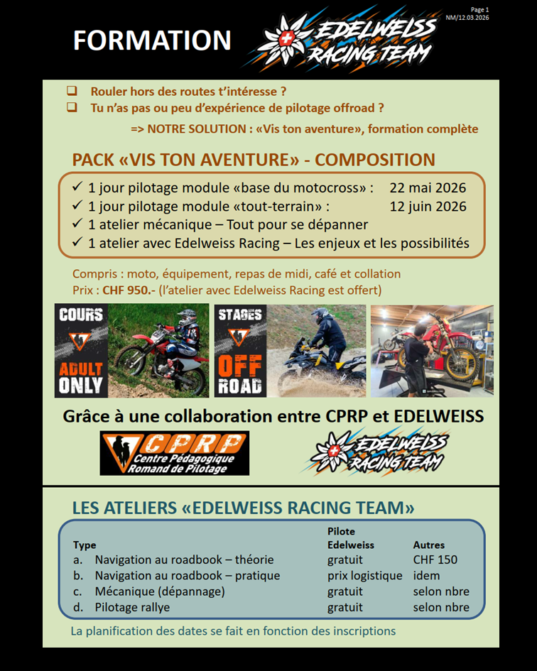 EDELWEISS RACING TEAM VOUS PROPOSE :